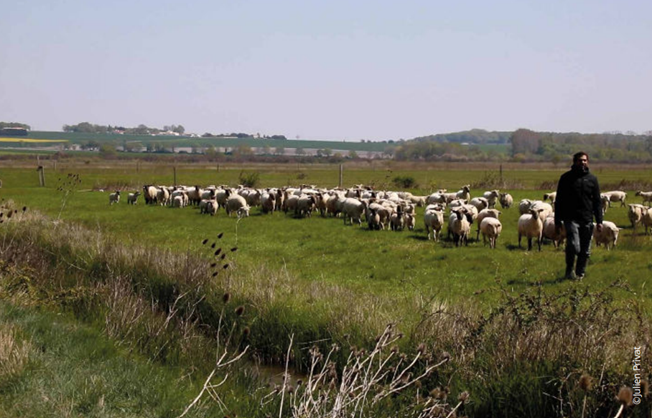 Olivier Mitsieno a été sélectionné parmi 11 candidats et est installé depuis 2019 sur ces terres. Ses brebis et agneaux sont élevés uniquement à l’herbe, et la viande est commercialisée en circuits courts.