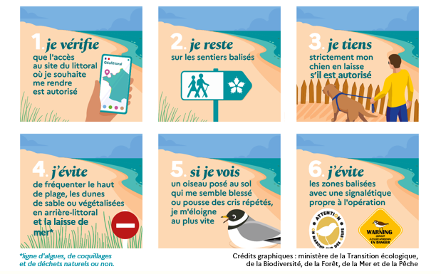 Pour en savoir plus, les usagers des littoraux peuvent aussi échanger directement avec les bénévoles présents sur les plages durant cette période : équipés de kits pédagogiques, ils peuvent vous aider à identifier ces espèces littorales et à mieux comprendre leur cohabitation avec les activités humaines.