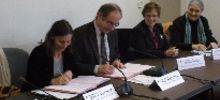 Odile Gauthier, directrice du Conservatoire du littoral, et Noël Mathieu, directeur général de l’agence de l’eau Loire-Bretagne, ont signé le 17 janvier 2014 à Nantes la convention de partenariat conclue entre les deux établissements.