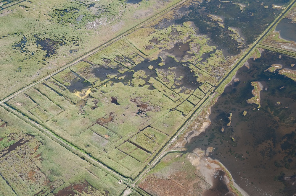 La mise en exploitation des deux piscicultures dans les années 80 a entrainé une modification de la circulation de l’eau douce. Canalisée et captée pour assurer l’alimentation de ces exploitations elle est ensuite redirigée pour un rejet à l’étang au détriment des habitats naturels périphériques.