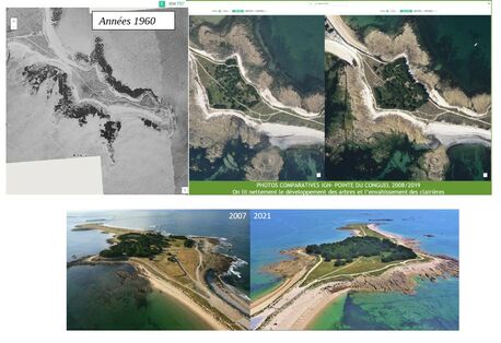 o le recul d'une partie du sentier côtier et la canalisation des accès à la plage dans un secteur en forte érosion